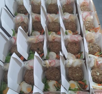 Kami adalah pembuat nasi box berpengalaman, siap melayani pembuatan hingga 1000 box per hari untuk berbagai acara dan kebutuhan Anda.